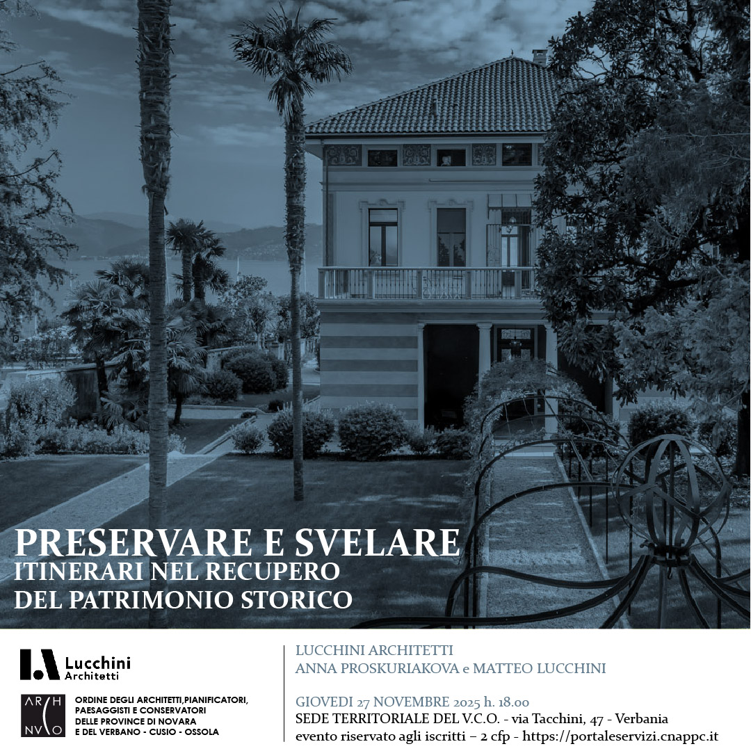 Nello spazio che ogni anno viene dedicato a un architetto del territorio, si invita lo studio Lucchini Architetti a presentare i propri lavori nella sede dell'Ordine a Verbania.