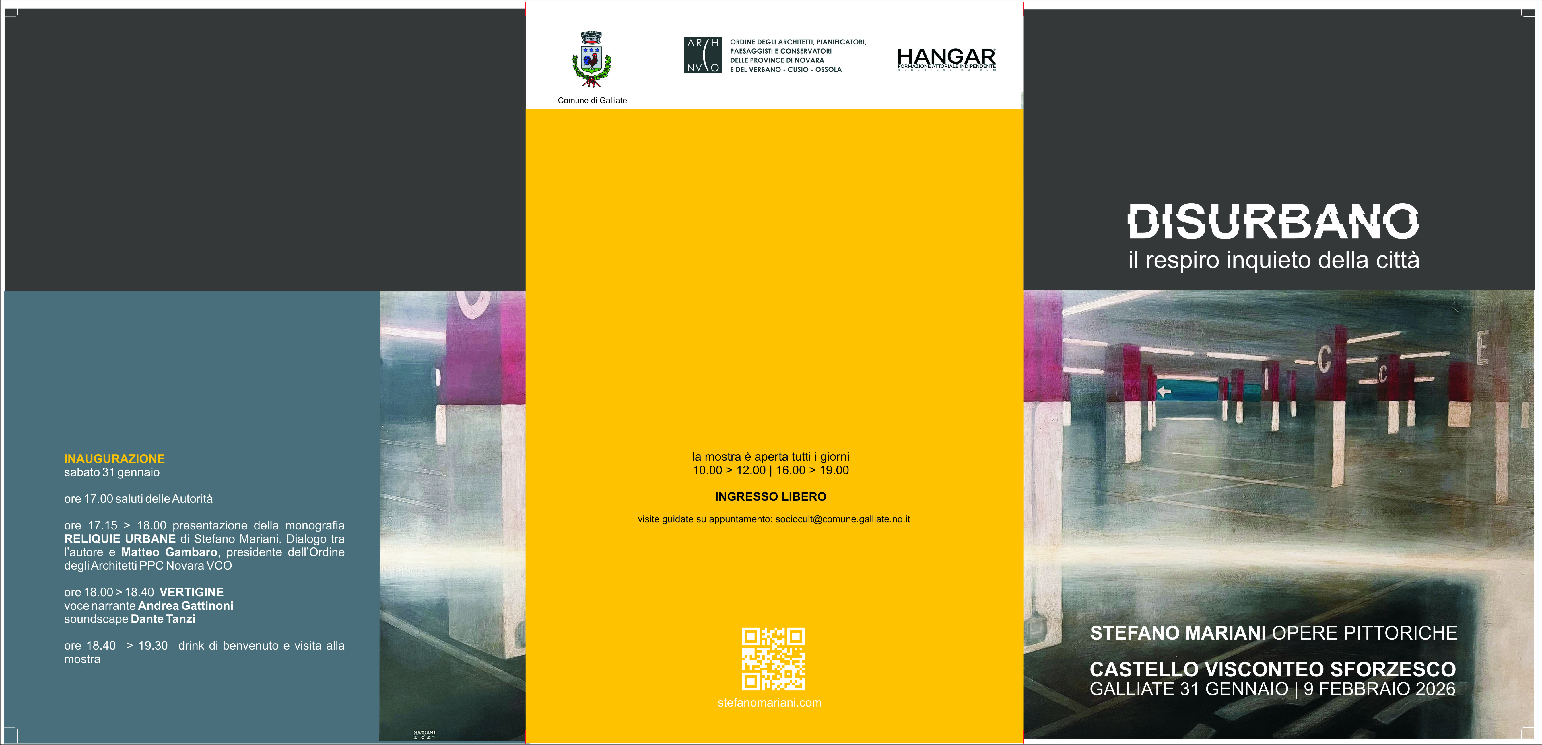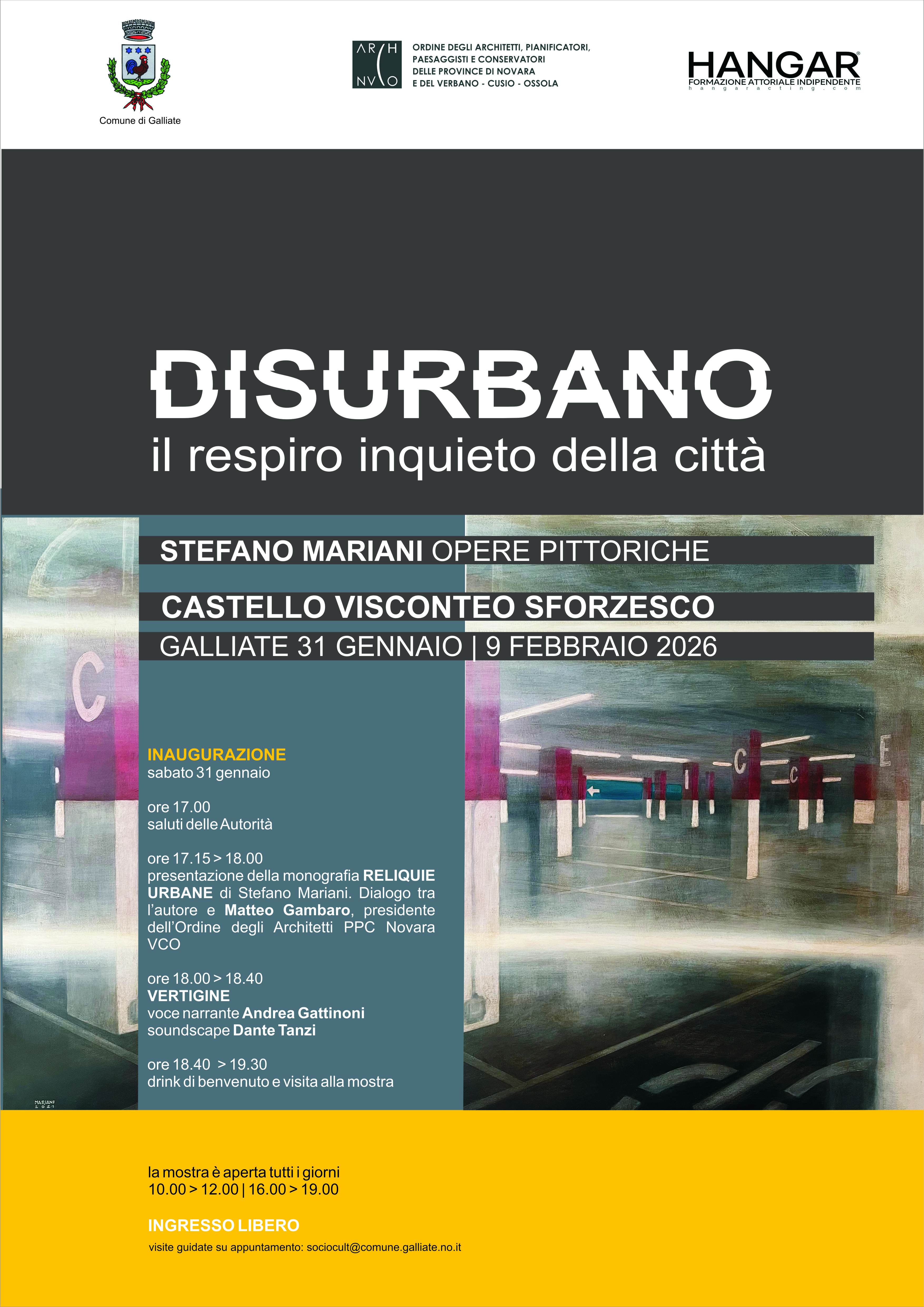 Mostra di opere pittoriche di Stefano Mariani, dal 31/01 al 09/02, aperta tutti i giorni dalle ore 10:00 alle 12:00 e dalle 16:00 alle 19:00. Ingresso libero. Visite guidate su appuntamento: sociocult@comune.galliate.no.it